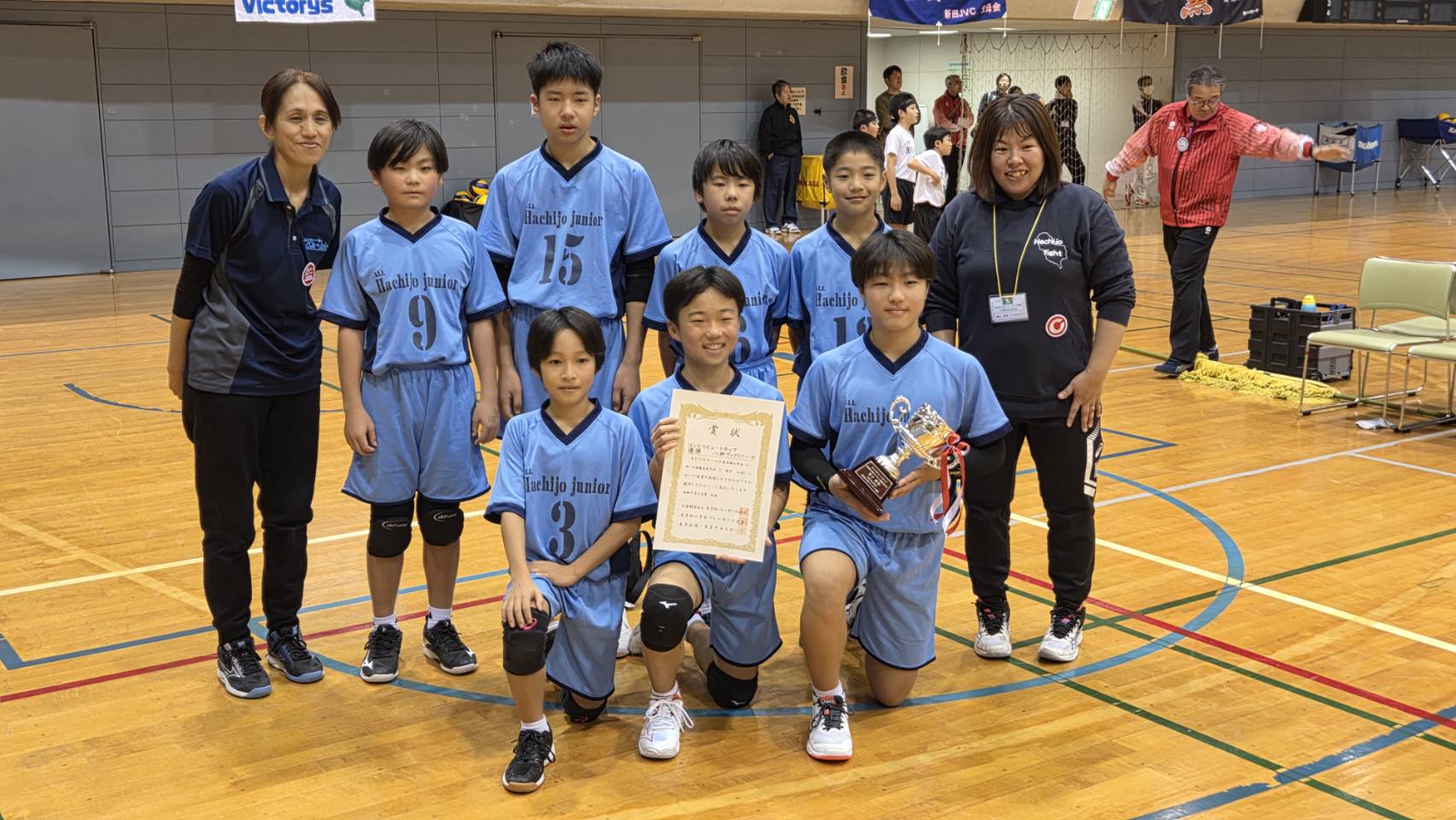交流大会結果 大会結果 2025.12.08 コントリビュートカップ令和7年度東京都小学生バレーボール連盟交流大会の結果を掲載します。 【男子】優 勝 八神ヴィクトリーズ準優勝 稲城ジュニアバレーボールクラブ 【女子Cコート】優 勝 けやきジュニア準優勝 数矢小バレーボール同好会 【女子Dコート】優 勝 小岩クラブ準優勝 稲城clover’s 【女子Eコート】優 勝 大四JVC準優勝 桐の子VC 【混合】優 勝 新田JVC準優勝 薫スターズ 男子優勝 八神 男子準優勝 稲城 女子C優勝 けやき 女子C準優勝 数矢 女子D優勝 小岩 女子D準優勝 稲城 女子E優勝 大四 女子E準優勝 桐の子 混合優勝 新田 混合準優勝 薫